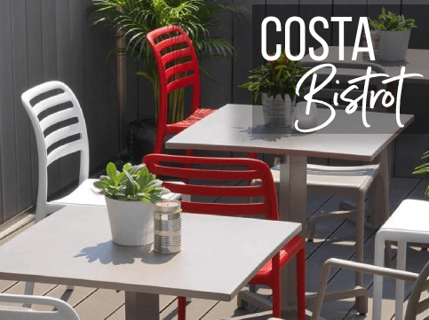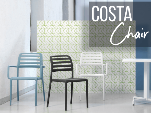 Nélkülözhetetlen vonalak egy könnyű, praktikus és kényelmes üléshez. A Costa egy kültéri szék karfákkal és rácsos háttámlával üvegszálas műgyantából: lekerekített profilú, lekerekített sarkokkal ellátott, varrat nélküli csőgyanta váz. Alkalmasak vendéglátó egységek, éttermek, kávézók, teraszok, kerthelységek, hotelek, szállodák tereibe.