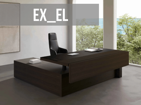 Az Ex_El vezetői íróasztal egy prémium kategóriás bútor, amelyet vezetői irodák, menedzseri terek és reprezentatív munkakörnyezetek számára terveztek. A letisztult és kiegyensúlyozott formatervezés azonnal professzionális megjelenést kölcsönöz a térnek, miközben a részletekben rejlő magas minőség erősíti az összképet. A bútor megjelenésében a tisztán tagolt kontúrok, valamint a fém, melamin, furnér és kőporcelán felületek elegáns kombinációja dominál, amely modern, ugyanakkor időtálló stílust biztosít.