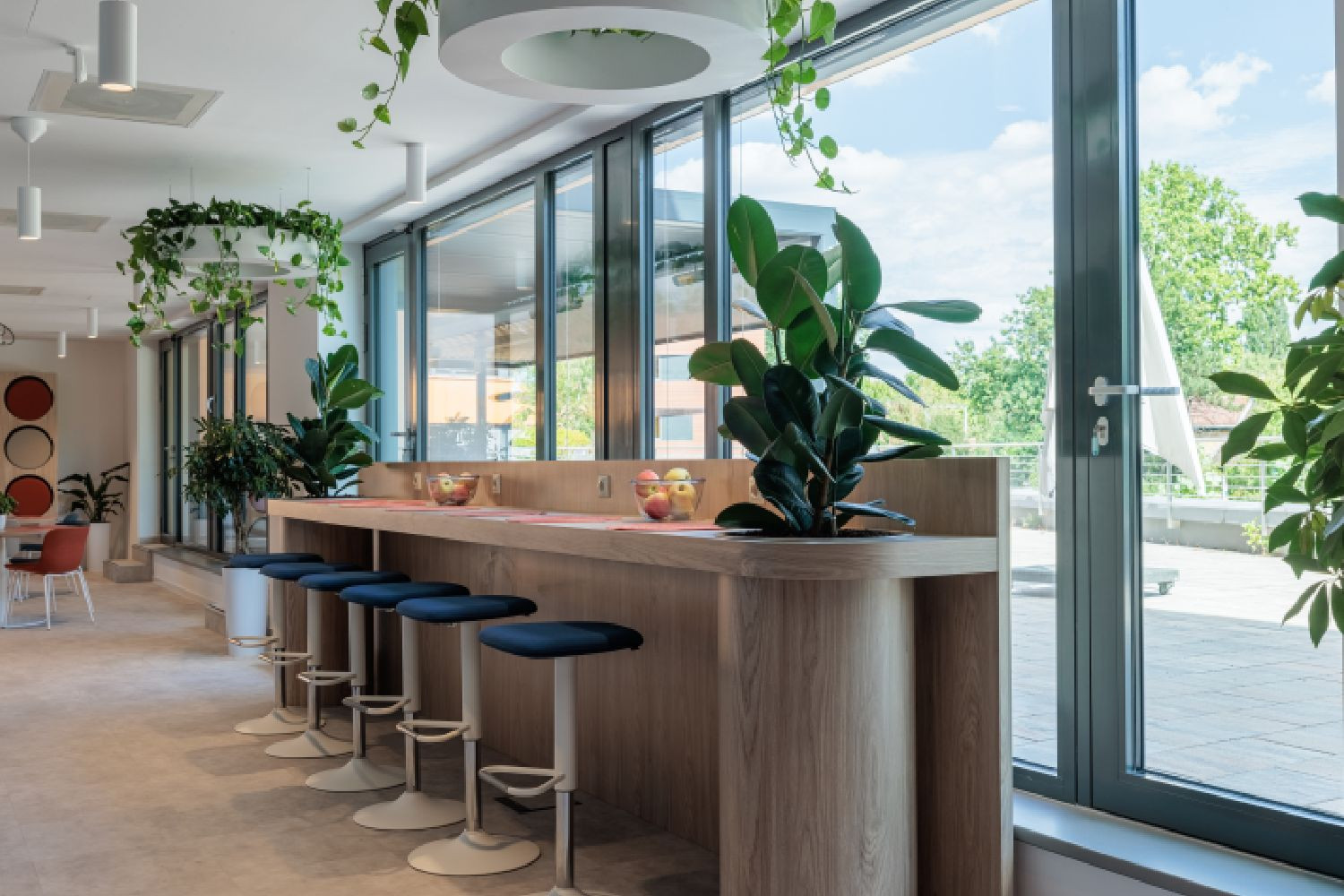 A bővülő létszám miatt új munkaállomásoknak kellett irodákat kialakítani. A nagyobb létszám miatt egy nagyobb étkező kialakítása is szükségessé vált, illetve szerettek volna egy olyan közösségi teret, ami többféle funkcióra is alkalmas: csapatépítésre, étkezésre, filmvetítésre/oktatásra, de akár egy relax zónaként is funkcionál : kávézásra, teázásra, vagy csak egy kis kikapcsolódásra, melyre a térhez kapcsolódó terasz további lehetőségeket kínál. Az ősfás, gyönyörű zöld környezetre kilátást adó étkező nagyszerű lehetőségeket rejtett magában. Ezt mindenképp szerettük volna kihasználni, emiatt olyan étkező pultot is terveztünk, ami a teraszra és a zöld környezetre néz. Egy olyan tárgyaló, vagy inkább ötletelő szobát is terveznünk kellett, amit csak a dolgozók, főként az informatika dolgozói használhatnak.