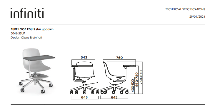 Kérjük, hogy tekintse meg a PURE LOOP EDU katalógusban, hogy a termékhez mely színek és szövetek választhatóak.