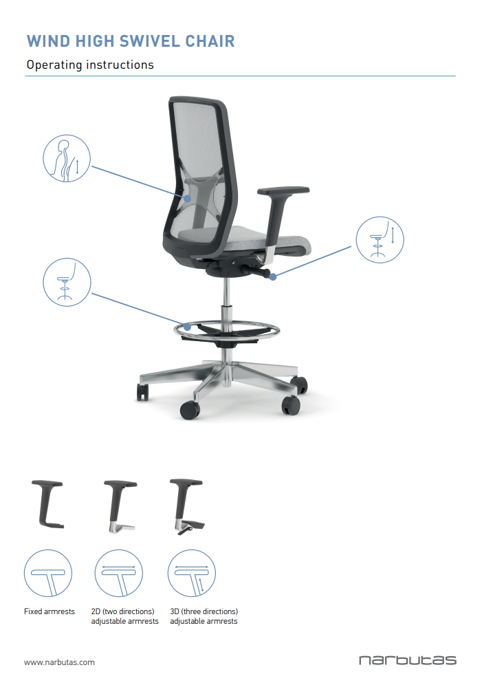 A WIND székek puha, kényelmes formájú ülésükkel és ergonomikusan kialakított hálós háttámlájukkal hosszú ideig is kényelmesen ülnek. A gyűrű alakú, állítható magasságú lábtámasz lehetővé teszi, hogy a széket az Ön magasságához igazítsa, megőrizze a helyes üléspozíciót, és elkerülje a kellemetlen hát- és nyakfájást. A görgők extra biztonságot és stabilitást nyújtanak, mivel ülés közben rögzülnek.