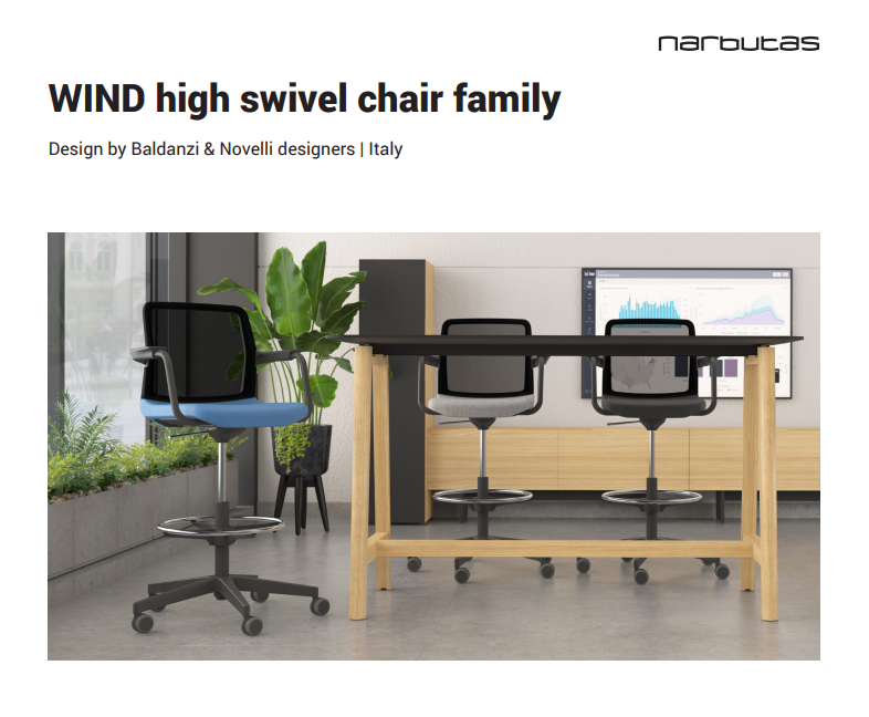 A Baldanzi & Novelli Designers olasz formatervező stúdió olyan elemet akart létrehozni, amely egyedi karaktert ad a széküknek, és megteremti annak identitását. Ezért döntöttek úgy, hogy a WIND székeket egy azonnal felismerhető, átlátszó, X-alakú ágyéktámasszal látják el, amely nemcsak a szék esztétikai megjelenéséhez járul hozzá, hanem egy nagyon fontos funkciót is betölt.